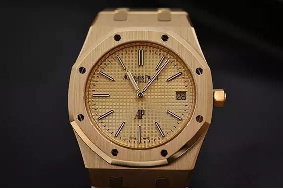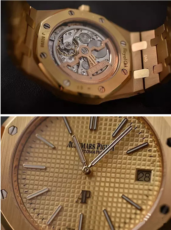 2款新超薄Ref.15202的外观一如既往的透着整个系列的味道,配套的时标与指针,结合华丽的黄金材质,细看之下还会发现盘面由黄金和香槟金2种颜色构成,AP标志也仍旧在你熟悉的老地方。