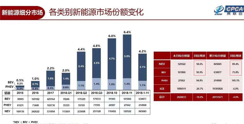 目前,新能源及电气化车型已经成为中国乃至全球汽车行业转型升级的重点方向和市场增长的重要驱动力。乘联会数据显示,在2018年车市整体下行的情况下,新能源车型销量逆市上扬,1-11月份同比增长89.4%,纯电动车型前11个月累计销量同比增长75.8%。其中,吉利新能源及电气化车型的表现十分亮眼,月销量连续过万,11月销量达10575辆。