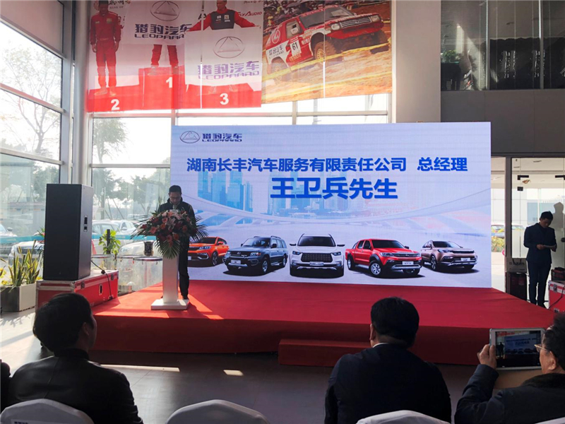 湖南猎豹汽车股份有限公司、副总裁,湖南长丰汽车服务有限责任公司董事长姚志辉,湖南长丰汽车服务有限责任公司总经理王卫兵等出席了本次庆典活动,众多领导与各大主流媒体及新老客户,共同见证这一历史性的时刻。