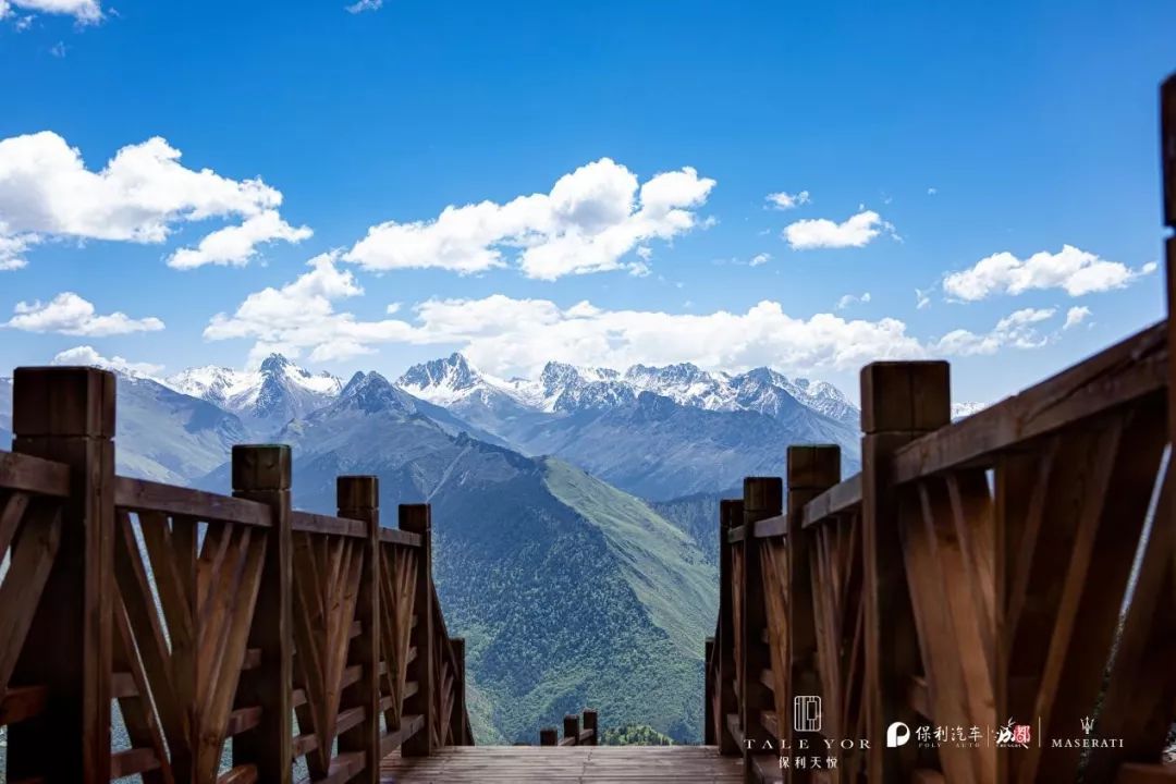 近处是碧绿涛涛的富氧木林,远处是披云盖雪的山峦叠嶂。这样一幅流动的油画,铺着静谧蓝天的底,竟是看了场沉浸式的自然电影,将城市远远抛在身后。