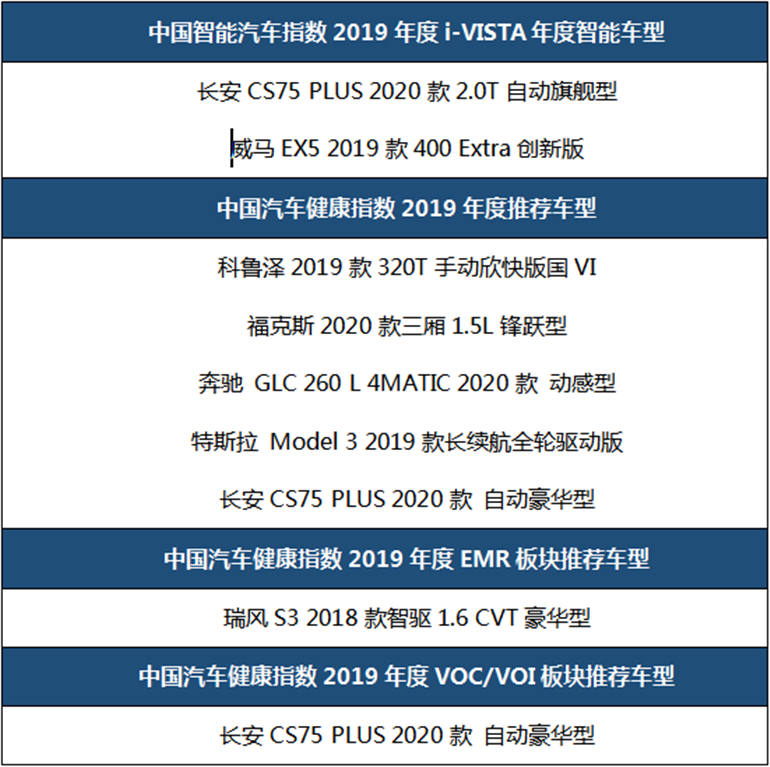 盛典最后,根据指数评测的客观数据,智能指数和健康指数测试数据,颁发了2019年度车型证书。