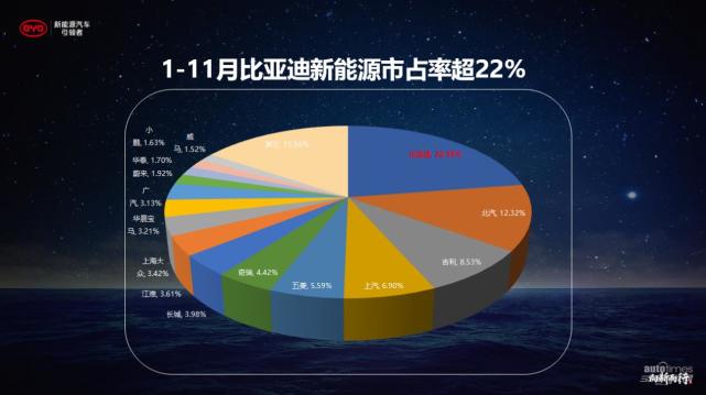 新能源市占率22%以上,超过第二名和第三名的总和。