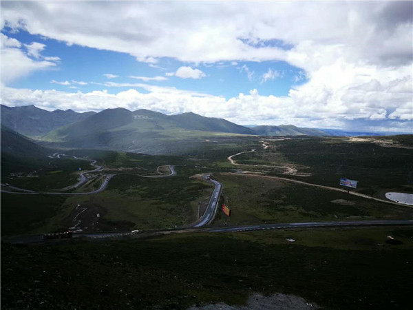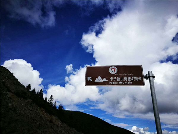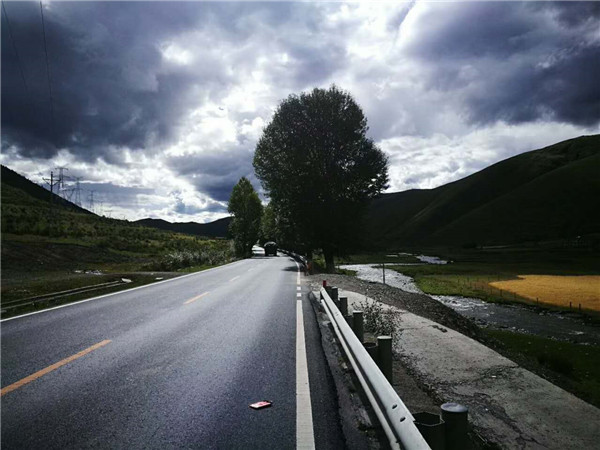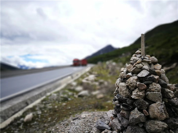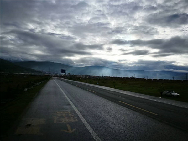 10公里坡路后,体力消耗殆尽,随着海拔升高,每走100米都异常艰难。在海拔3700米的二台桥时,距离坡顶还有7公里,来一碗酥油茶补充能量,再继续前行。快到山顶,一辆汽车停在身边,开车的藏族小伙非常友好地问需要帮助吗?虽然没有接受他的帮助,这是这么多年我第一次遇到这么温暖的事,心里有些感动。