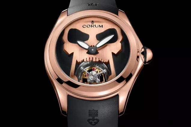 在以往昆仑的产品当中,也曾出现过泡泡镜加镂空式的腕表设计,透过泡泡镜可以观察到腕表内部的运作过程以及精美表盘。新款腕表的表盘采用骷髅样式,在六点钟方向可以观察到陀飞轮的运作模式。