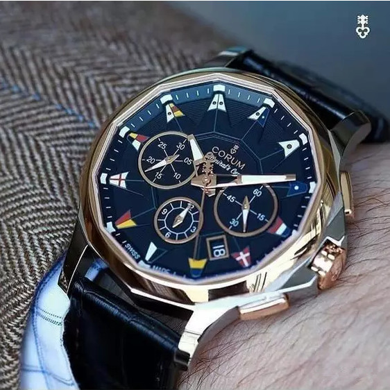 1983年,著名的海军上将杯系列旧貌换了新颜,独特的十二边拱形表盘,配以十二面国际航海旗帜充当的小时刻度,这样的设计也使昆仑的海军上将系列腕表成为了经典。