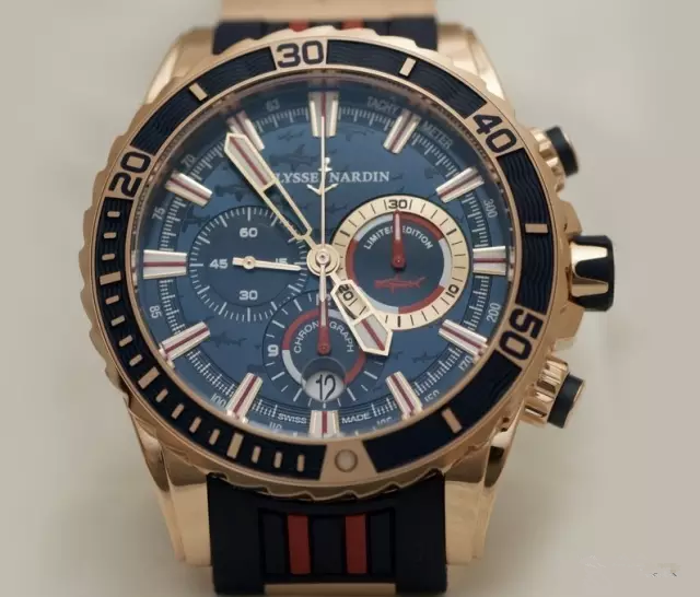 虽然雅典的玫瑰金材质潜水表不在少数,但是感觉都没有这款的冲击力那么的大。就外形而言,三个小表盘的配合也很协调,感觉这一款式还是相当的好看!当然这款的价格也是很“好看”,28万的定价果然是让我只能看看……