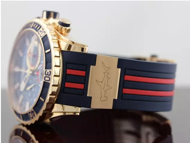 个人觉得这款腕表之所以华丽,应该是在于它的配色:金色的玫瑰金表壳,蓝色的表盘和表带,以及红色的配色点缀;红、黄、蓝,这不就是传说中三原色(色料减色法)吗?这样的搭配设计,果然可以给人带来视觉的冲击!