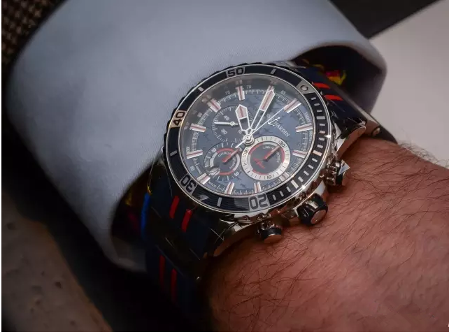而在今年的雅典新品中个,一款潜水系列的腕表1502-151LE-3/93-HAMMER还真是让我眼前一亮,随之虎躯一震;要问我为什么,作为一款潜水表,这款腕表还真是华丽到闪瞎我的眼呢!