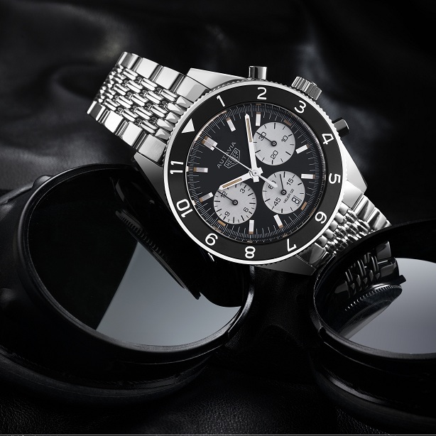Autavia由汽车 (AUTomobile) 和航空 (AVIAtion) 两个单词缩写而成,是旋转表圈、超大蜗形计时盘和经典黑白配色的代名词。这款诞生于1962年的品牌经典之作现今融入全新升级的功能和专有自制机芯以全新复古面貌庆祝其问世55周年。