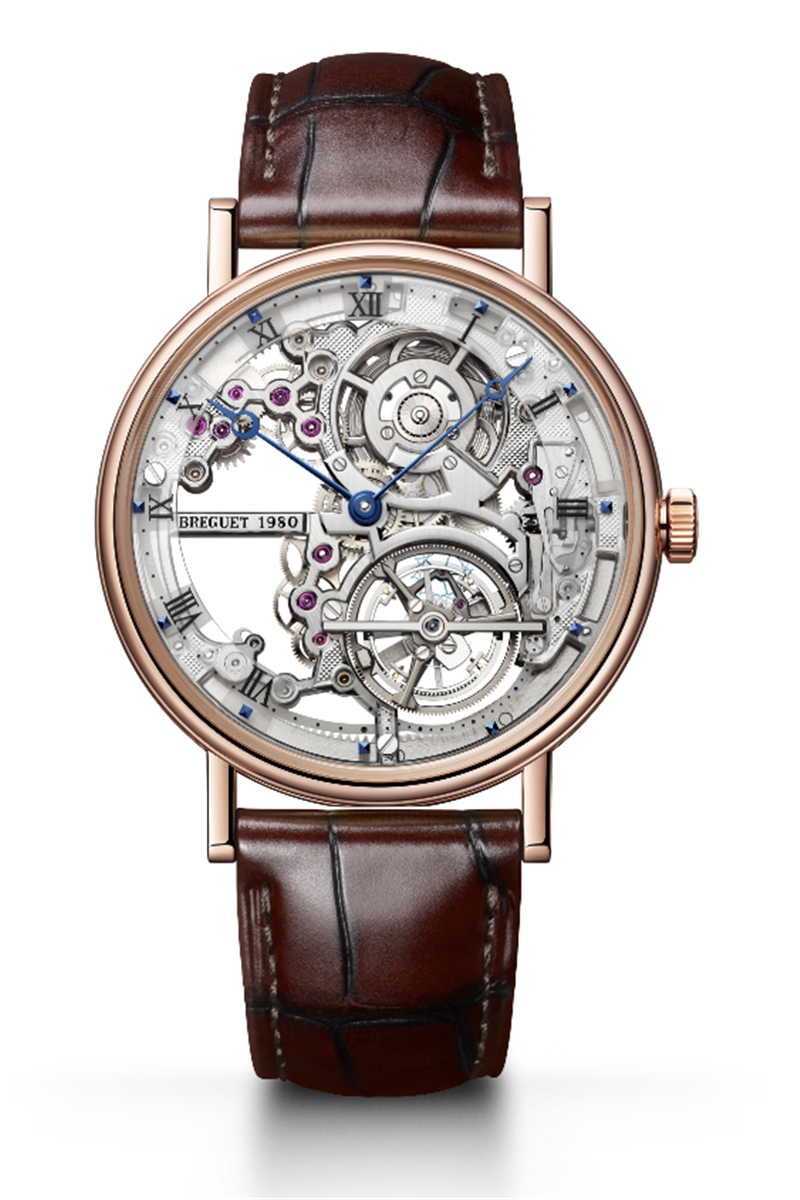 两种款式均搭载世界上最为卓著的自动上链陀飞轮机芯之一,其厚度仅为3毫米。 表款与直径41毫米玫瑰金或铂金材质表壳非凡融合,搭配玑镂刻花表盘的表款最大厚度为7毫米,珐琅款的最大厚度为7.45毫米。薄度并无碍于机芯润饰,表桥及发条盒均以手工镌刻精美修饰。其可双向运动的铂金环形自动陀位于机芯外缘,并且于宝玑制表工厂内手工饰以玑镂刻花图案。