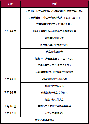 通过红旗HS7·长春国际汽车文化节暨首届红旗嘉年华系列活动,一个年轻化、国际化、有情怀的新红旗品牌形象,将进一步展现在国人面前,敬请期待!