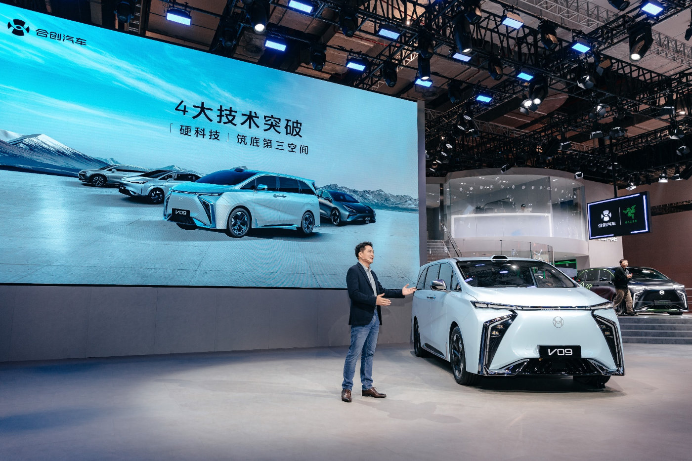 秉持为用户打造“最佳第三空间”初心,合创汽车举办“一探9境 创享新趣”为主题的发布会。会上,备受关注的全新纯电旗舰MPV合创V09星耀登场,并首秀内饰,同时以V09为原型进行联名潮改的新品也一同亮相,倾力演绎 “最佳第三空间”,领潮上海车展。
