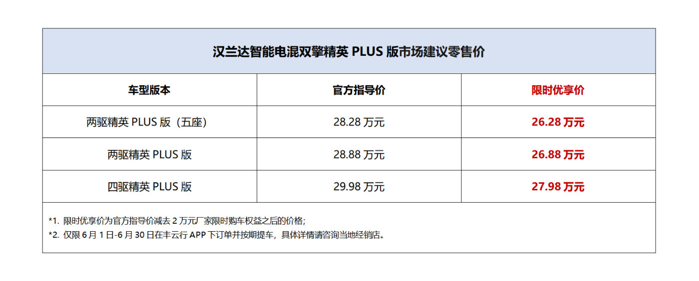 发布会上,广汽丰田正式启用汉兰达全新品牌口号“汉兰达,时间给你的答案”,这是基于广泛车主调研与车主们共创的品牌主张。同时,为庆祝广汽丰田经销商渠道成立17周年,全国经销商联合推出极具性价比的系列新品--汉兰达智能电混双擎精英PLUS版,共三个车型版本,以更多元化选择、更高性价比,更好地满足顾客对汉兰达的高价值需求。