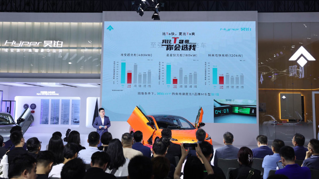 在展示产品和技术的同时,Hyper昊铂还在此次车展举行了以“15分钟超充450km”为主题的昊铂GT免费超充暨头部房企签约发布会,重磅推出“昊铂请你15分钟免费超充”活动。凭借800V高压平台技术优势和快速完善的全国补电网络布局,Hyper昊铂争做行业超充领头羊,而昊铂GT则将抢先领跑800V超充时代。
