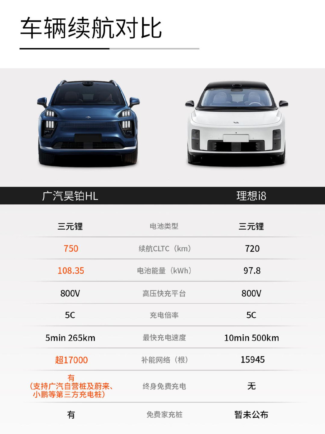 而在用户关注的用车成本上,昊铂HL更是一以贯之地站在用户角度考虑。整车不仅随车赠送家用充电桩,还为车主提供终身免费充电服务,真正做到了“在家用家充,在外免费充”,极大减轻了家庭的长期能源支出负担。与之对比,理想i8虽然具备出色的10分钟补能500公里能力,配备97.8kWh电池、CLTC续航为720km,但目前并未公布终身免费充电相关政策,也未明确赠送家用充电设备,这使得其后期使用中的能耗成本可能相对更高。