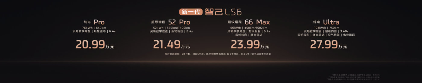 此次,新一代智己LS6推出四款车型,预售价格区间为21.99万元~28.99万元,预售权益价格区间为20.99万元~27.99万元。