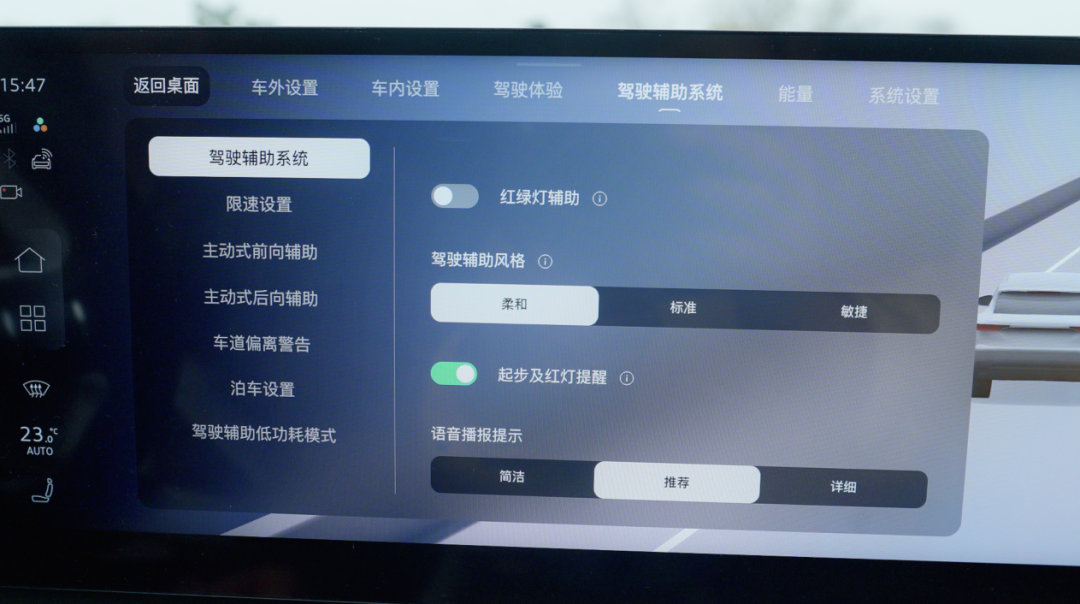 由于上汽奥迪首次提出“辅助驾驭”概念,提供了柔和、敏捷、标准三种驾驶模式,可充分适应中国用户的多元驾驶偏好,让奥迪 E5 Sportback仍延续纯正奥迪驾控质感。所以在测试时,我们也调到了“敏捷”模式,并开启10%速度偏置,车辆动作会更积极,也更符合“人驾”的实际场景。但提醒一下大家,如果驾龄不是很长,建议从“柔和”模式开始使用,这样碰到特殊情况,车辆给驾驶员介入的反应时间会更充足。