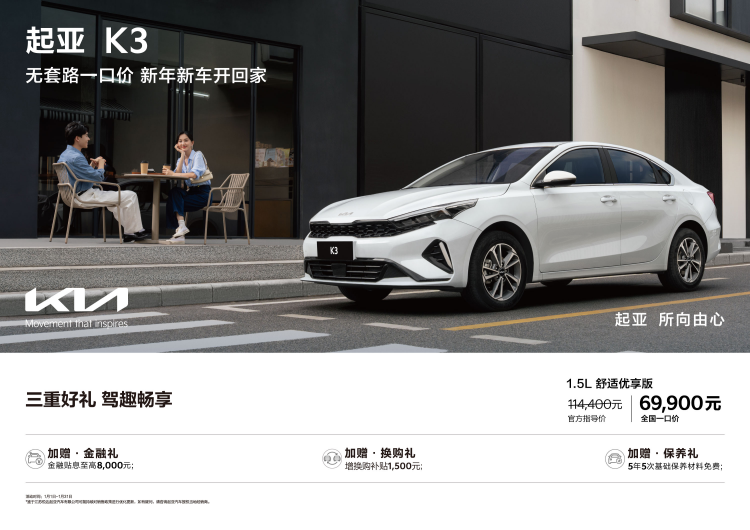 当代年轻人的生活哲学里,“爱你老己”从来不是自私,而是把日子过成自己喜欢的模样。比如通勤不必将就、出行更有品质、消费没有套路,这一切起亚K3都能精准满足。更惊喜的是,随着起亚K3“全国一口价”政策的推行,K3 1.5L舒适优享版全国一口价仅需69,900元,让宠爱自己的成本一降到底,购车从此告别议价内耗,轻松解锁品质出行生活。