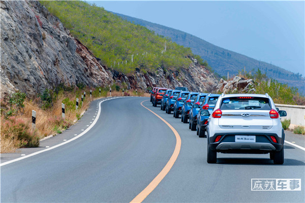 而在车身尺寸方面,瑞虎3xe 400的长宽高分别4200/1760/1570mm,轴距为2555mm,最小离地间隙达到了150mm,所以在经过一些山地路面的时候,依然能保持很好的通过性。并且云南独特的喀斯特地貌,也让它的行驶质感得到了检验。