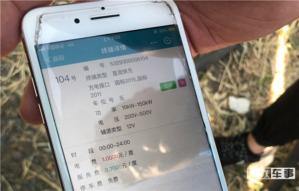 在行驶的中途,我们将车开到了一个快充停车场,据工作人员介绍,瑞虎3xe 400支持快充,在快充APP上显示一度电的费用是1元,服务费是每度电0.7元。不过,这应该是由于工业用电和第三方平台的缘故,所以快充的价格会比较贵。如果是自己家的充电桩,用车成本会得到很大的节省。